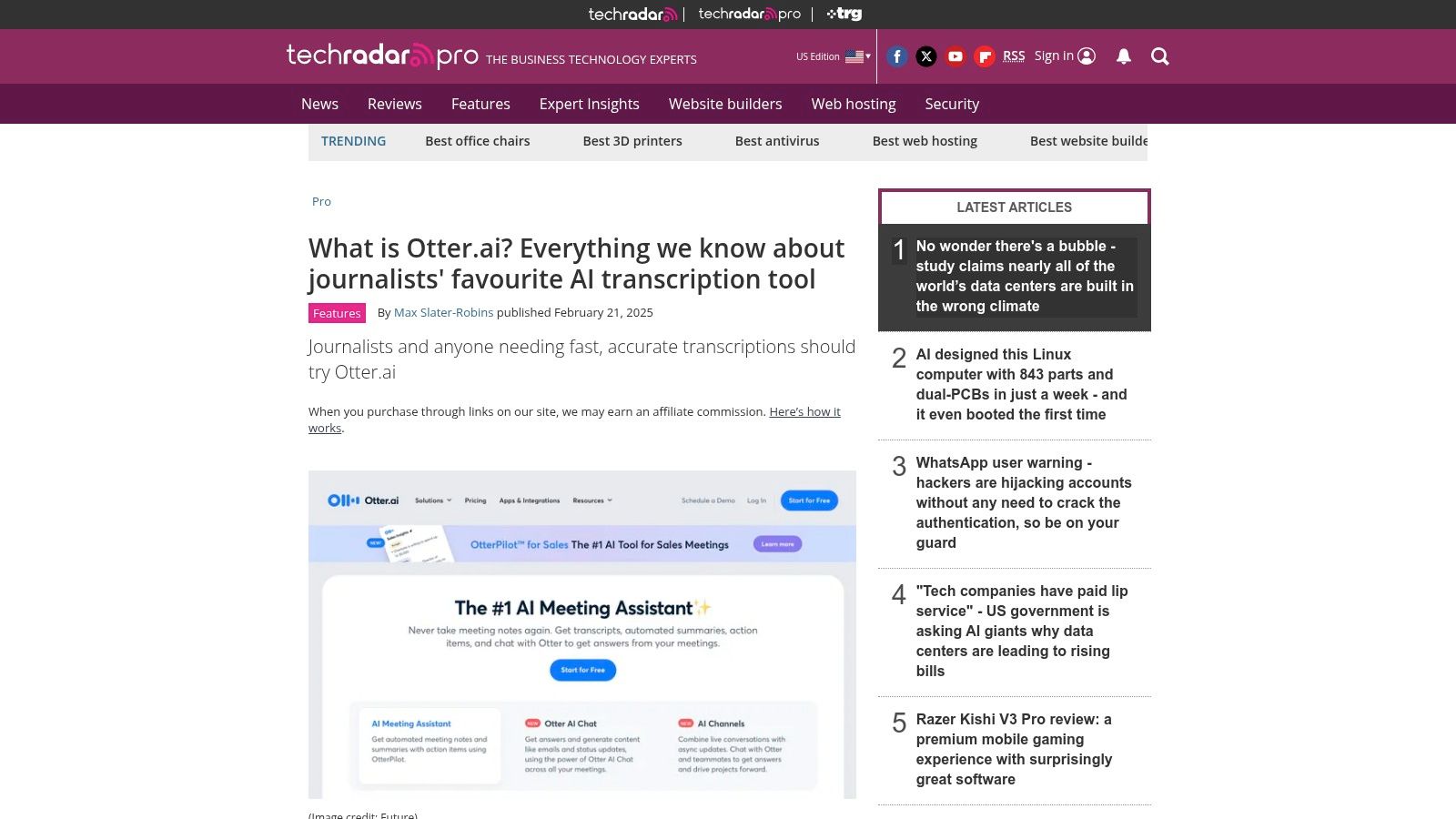 #7. TechRadar – What is Otter.ai? Pricing and plan breakdown