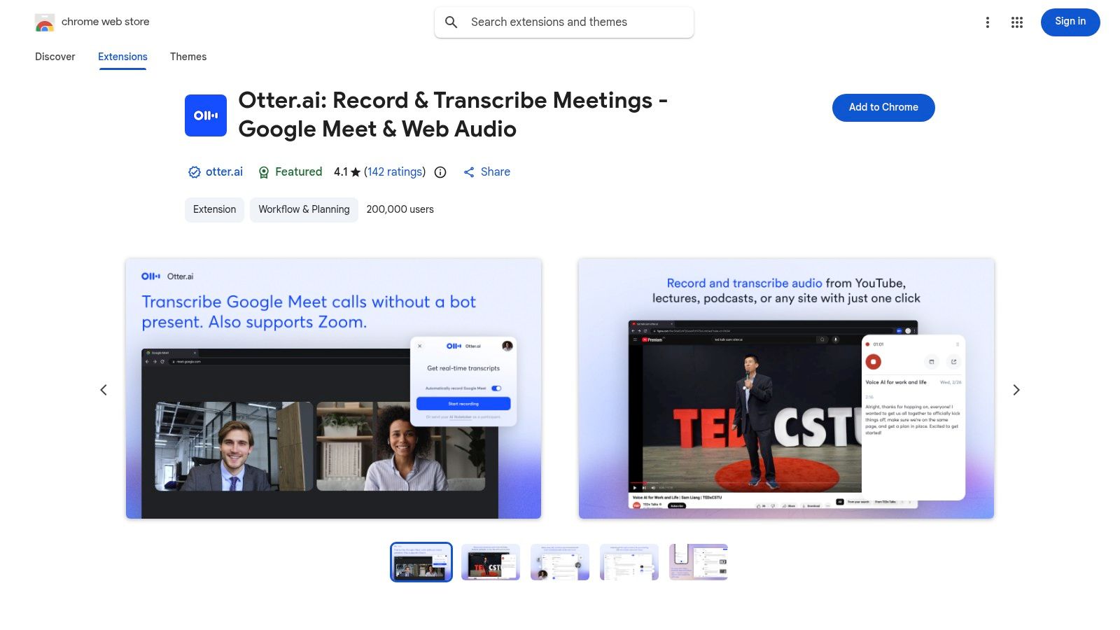 #5. Chrome Web Store – Otter.ai: Record & Transcribe Meetings