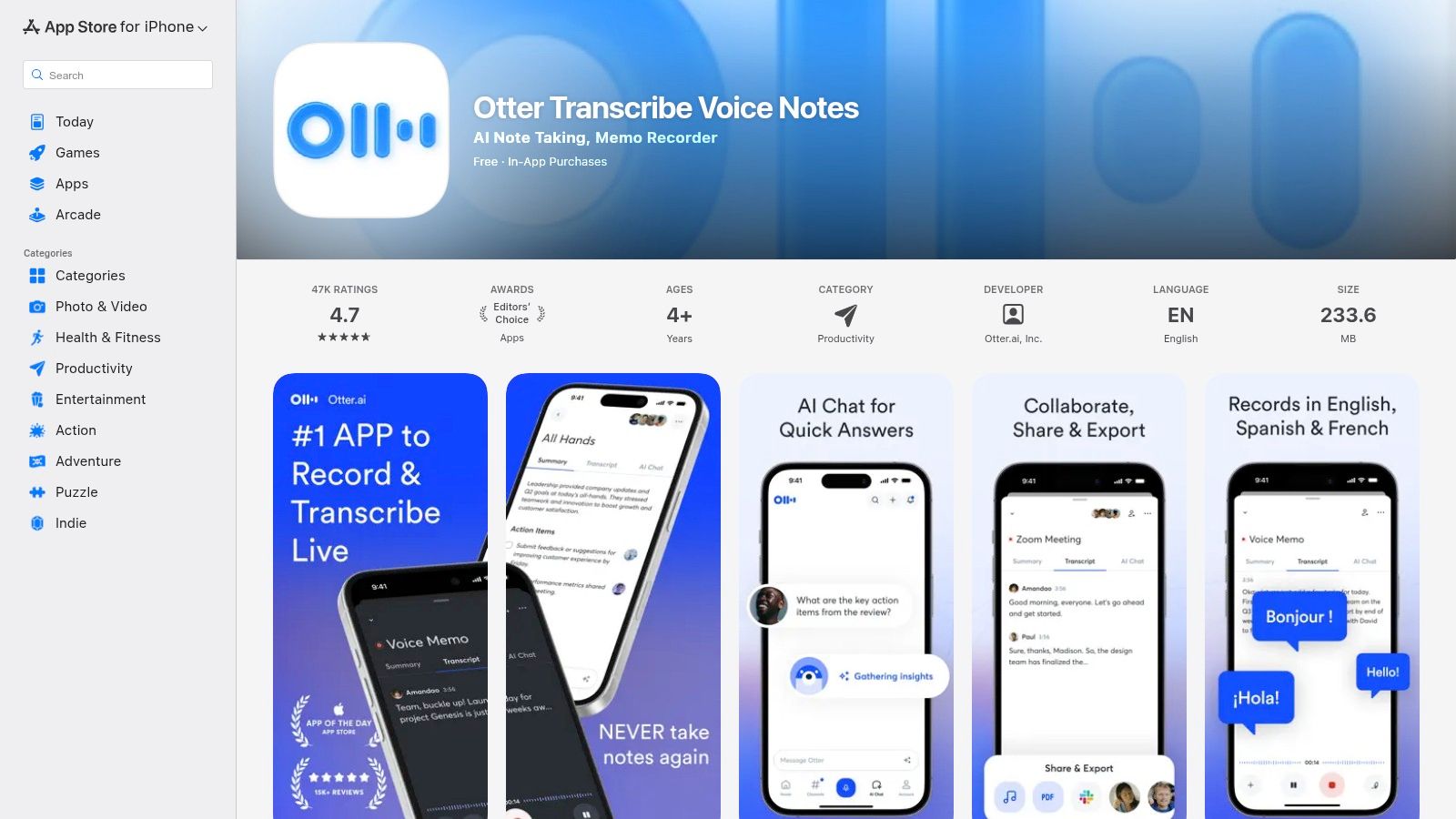 #3. Apple App Store – Otter Transcribe Voice Notes