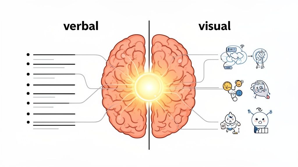 The idea is called Dual-Coding Theory. In simple terms, your brain processes information through two separate channels: a verbal one for words (spoken and read) and a visual one for images and diagrams. When you only use one—like reading a transcript—you’re leaving a ton of your brain’s processing power on the table.