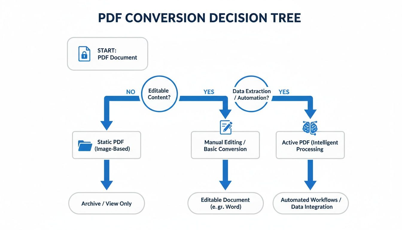 The choice boils down to two things: the type of PDF you have, and what you need to do with it. This quick decision tree can help you match your document to the right strategy.
