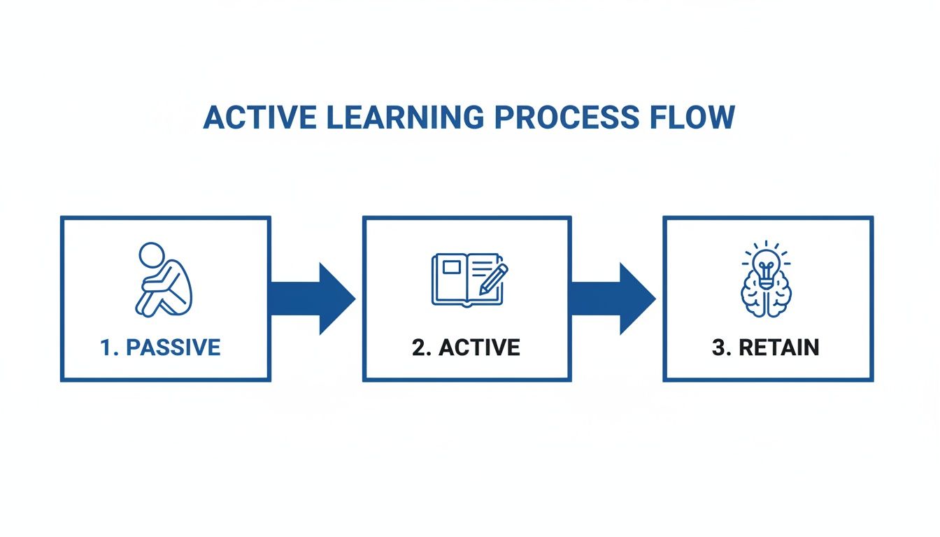 This simple flowchart shows the powerful shift from just passively watching to actively retaining what you learn.