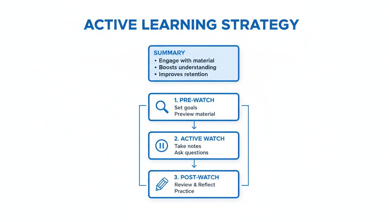 Post-Watch Summary (5 Minutes): The moment the video ends, spend five minutes writing down everything you can remember without looking at your notes. It's a pure recall exercise that solidifies what you just learned.