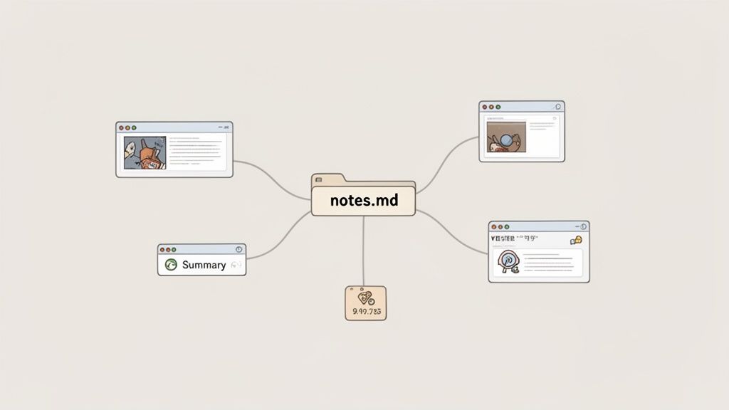 This simple shift turns scattered video learnings into something tangible. For a deeper dive into this philosophy, check out our post on how to build a second brain. The main idea is that your knowledge system should be resilient, private, and under your control.
