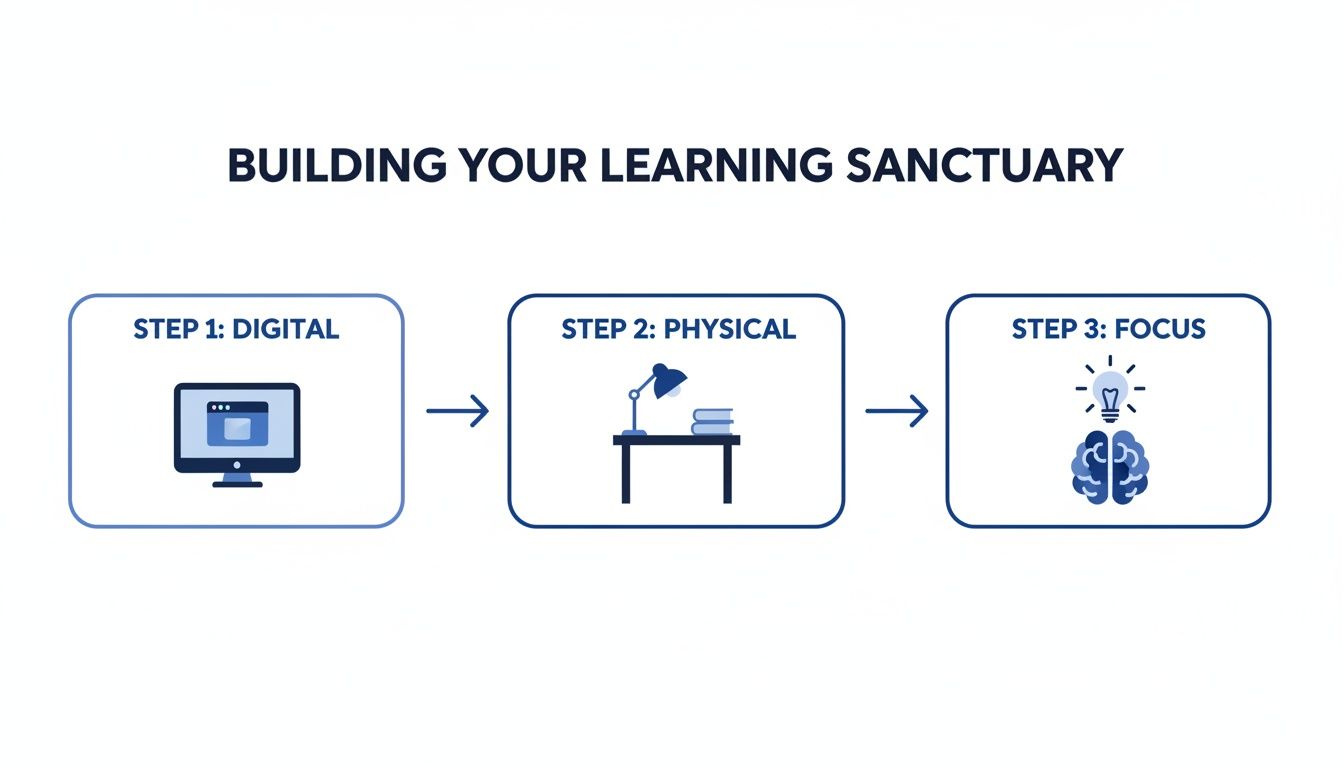 Trying to learn in a space built for distraction is like trying to swim upstream—you’ll burn through your willpower before the video starts. The goal is to engineer a space, both digital and physical, that makes focus the path of least resistance.