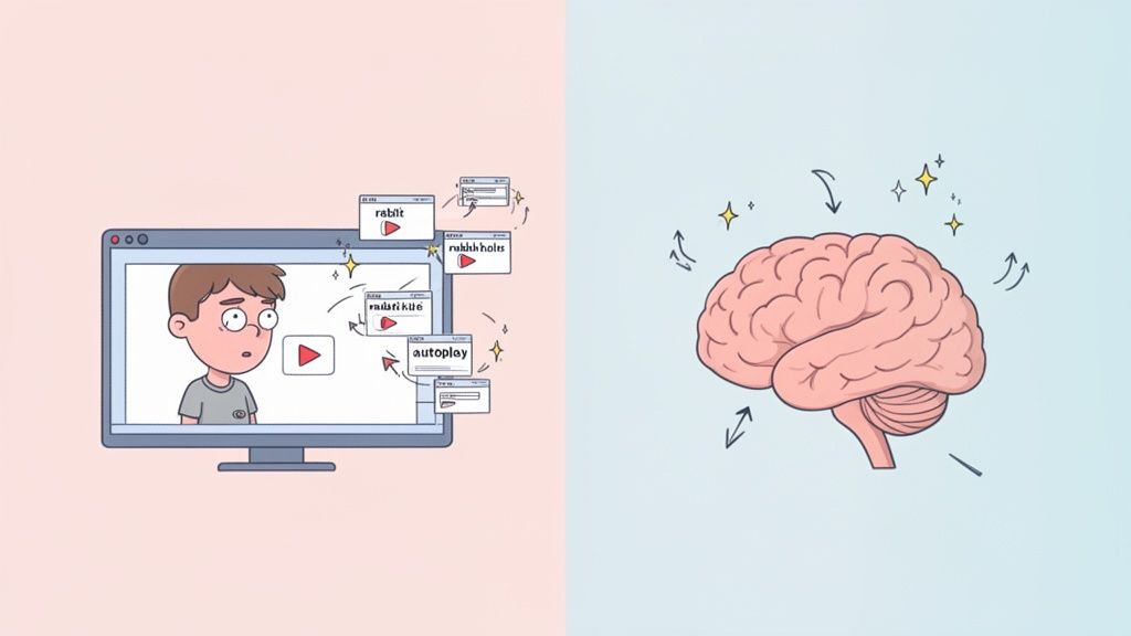 YouTube is designed to pull you down a rabbit hole, so fighting its algorithm with willpower is a recipe for frustration. You have to change the environment before you press play.