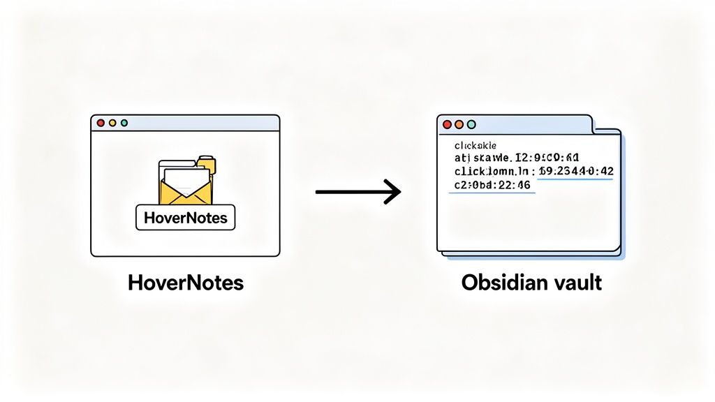 This direct-to-vault workflow is a significant time-saver for anyone who values efficiency and data ownership. For a more detailed walkthrough, see the guide on the HoverNotes and Obsidian integration. This process ensures every piece of knowledge you extract from a video is captured, organized, and stored safely in a system that belongs to you.