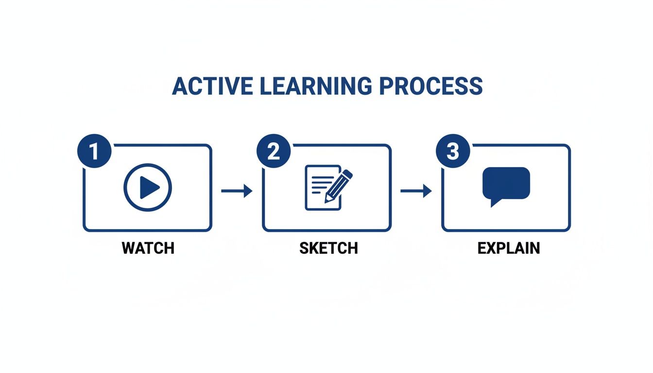 This simple workflow—watching, sketching, and explaining—is what transforms passive viewing into active learning. You're forced to engage directly with the material, which is where real understanding happens.