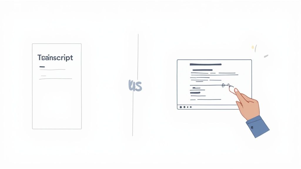 Ultimately, choosing the right tool depends on your goal. If you just need a rough text file of what was said, a transcript tool might be enough. But if you're trying to genuinely learn and retain complex information from a video, a tool that analyzes the visuals isn't just better—it's essential.