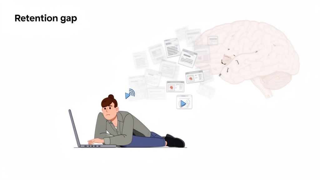 Sitting through a two-hour lecture or a dense coding tutorial doesn't mean you've learned anything. Most of the time, the information just washes over you. This is the retention problem with passive video watching—it feels productive, but the knowledge doesn't stick.