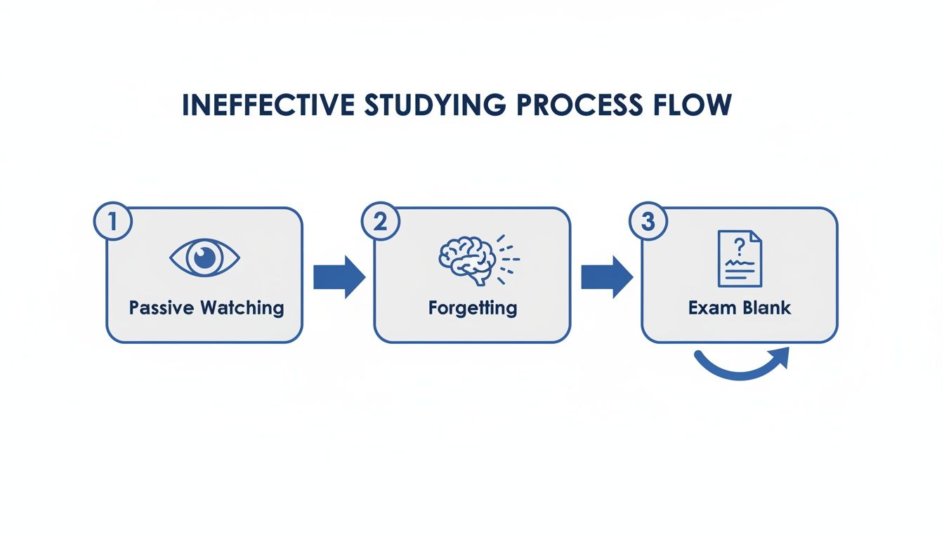 The problem with cramming video lectures is its reliance on passive consumption. Just watching creates a dangerous "illusion of competence." It feels productive, but the information rarely makes it into your long-term memory.