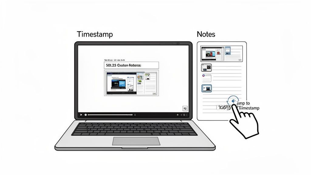 This is a big deal because most transcript-only tools miss what really matters on screen. They can't see diagrams, code snippets, or charts. Having those visuals embedded right in your notes is a massive advantage when it's time to review. You can dive deeper into this topic in our guide on taking study notes.
