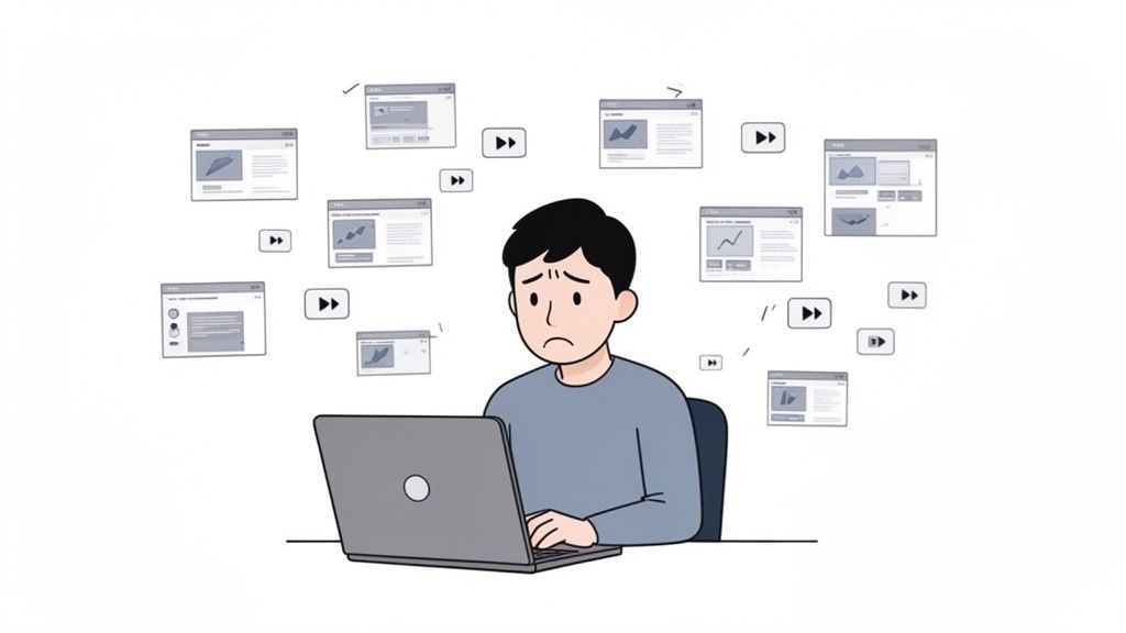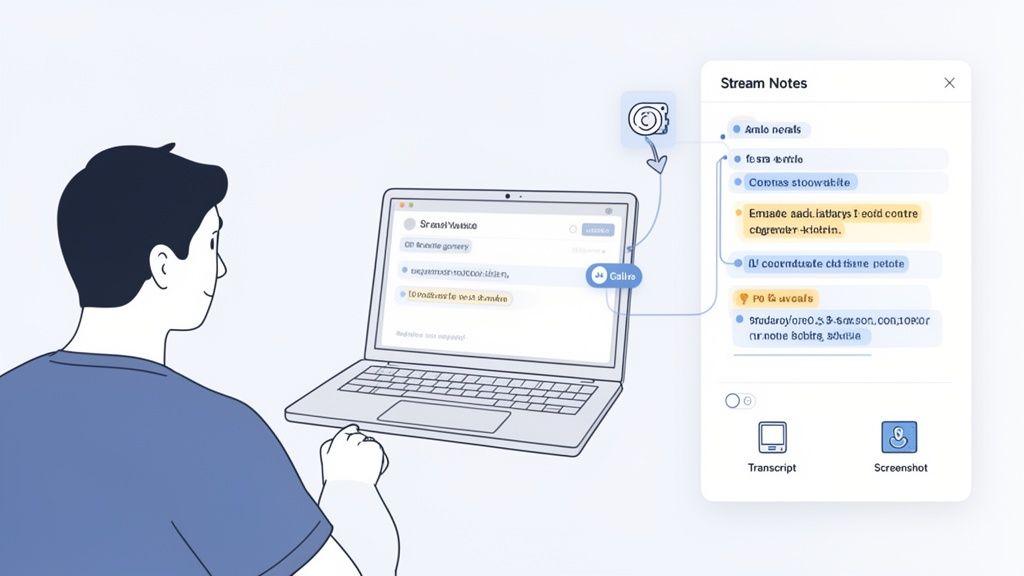 Switching from passive viewing to active note-taking is essential for real learning. Our guide on the science of video learning explores this shift. The goal is to create a system that lets you engage with the material without the constant friction of pausing and rewinding, building a searchable library of tutorial notes.