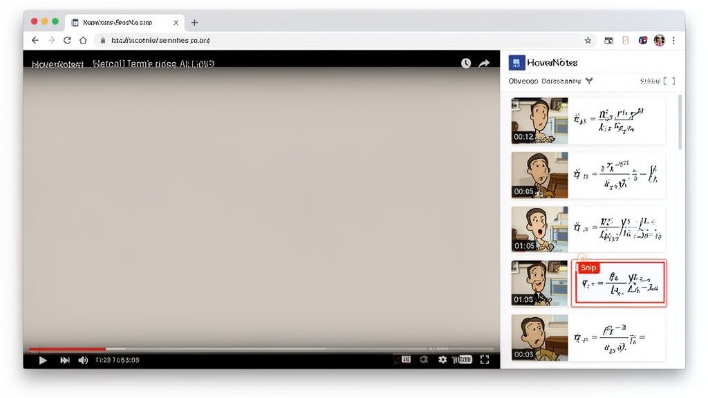 With your video playing, start the extension. This is where you'll see the difference between HoverNotes and a basic transcription tool. The goal isn't just to dump a wall of text. It's to grab the full context—the visuals, the diagrams, the code on screen—that most tools ignore.